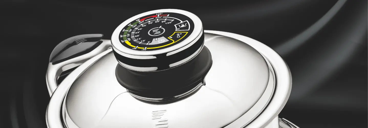All Zepter Masterpiece Cookware pots have the patented accuthermal bottom which work perfectly with the new Radio Induction Cooker, to let you prepare exquisite meals according to Zepter’s healthy cooking philosophy. The Radio Induction Cooker is compatible with every kind of magnetic-based pot, pan or casserole.