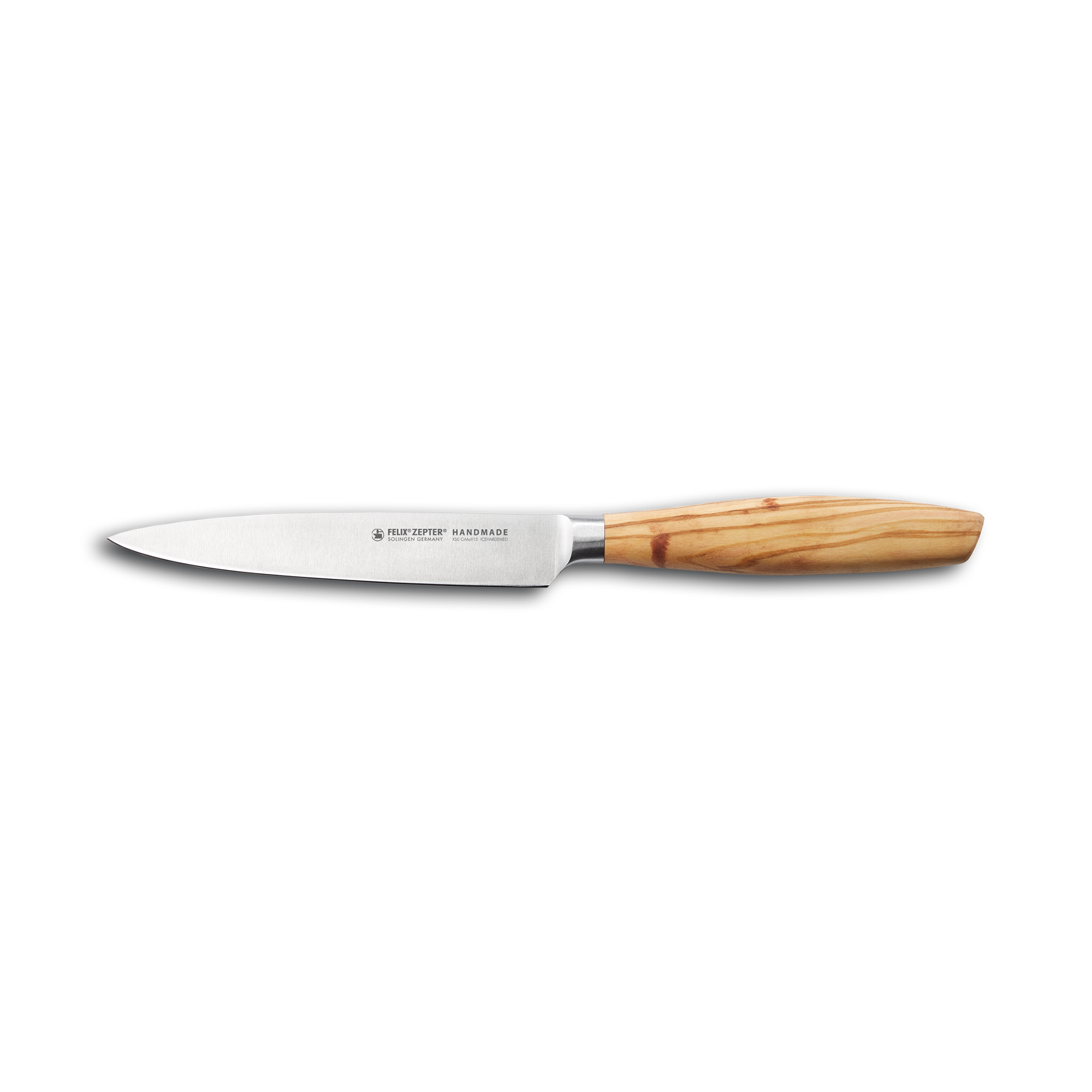 Forged from a single piece of X50 CrMoV15 steel, the hand-made blade of the Olive Wood collection is of superior quality, durability and sharpness guaranteeing maximum efficiency for many years. A smaller-diameter handle of beautiful golden yellow colour provides a balance of style and functionality even for smaller hands in order to have a firm grip while performing a range of tasks. Olive heartwood is known for its antibacterial properties, making this knife more hygienic for use. With a little treatment from time to time, the natural wood will retain its structure and intensive colour for years to come.